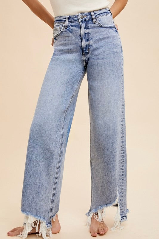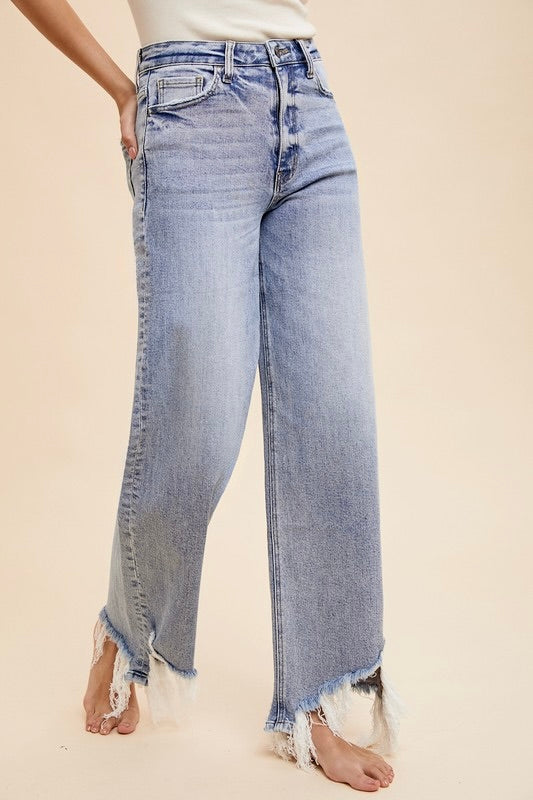 Asymmetrical Distress Hem Straight Denim