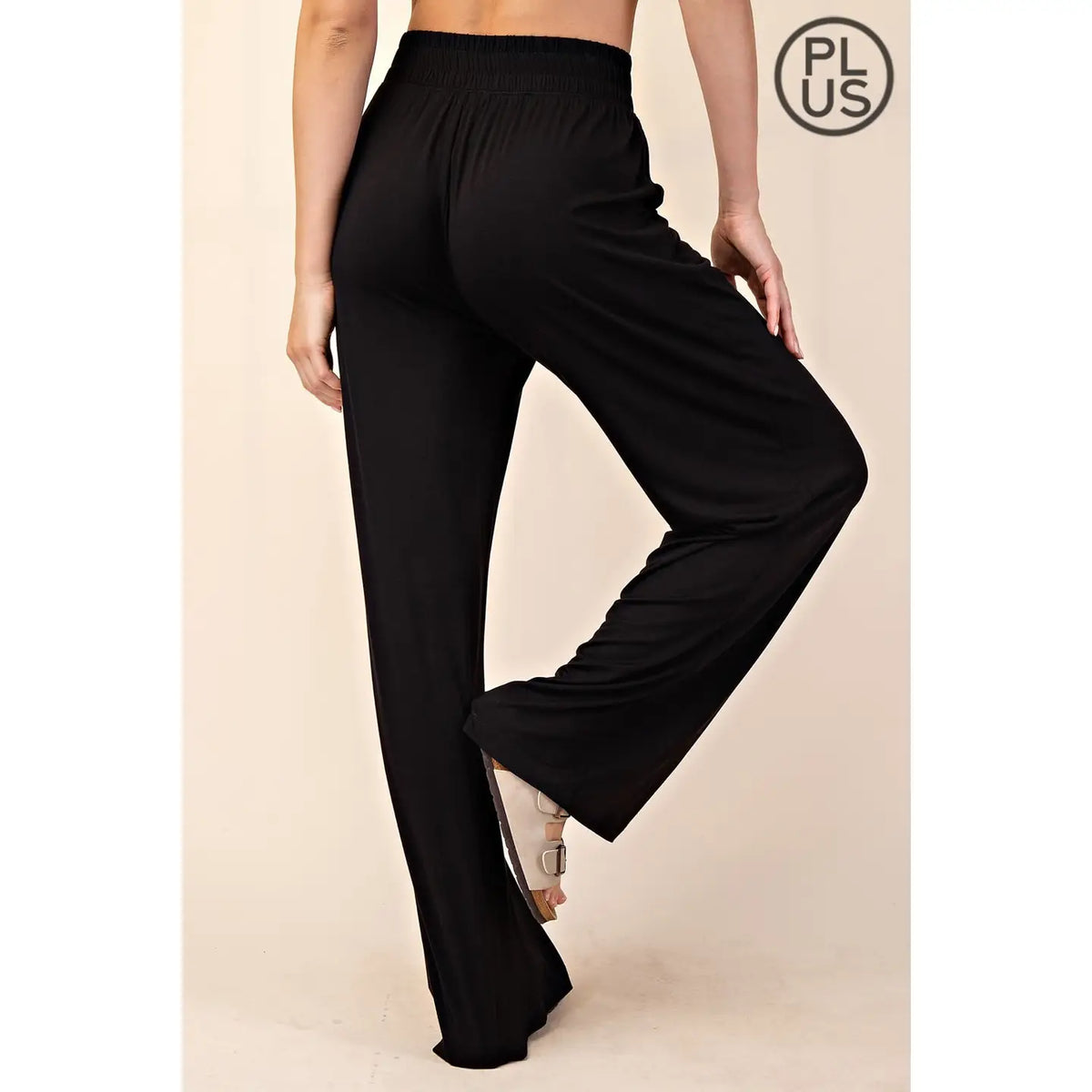 Relaxed wide-leg silhouette with a high-rise waistband that flatters and smooths. Full length with a beautiful drape. True to size with generous stretch for all-day ease.