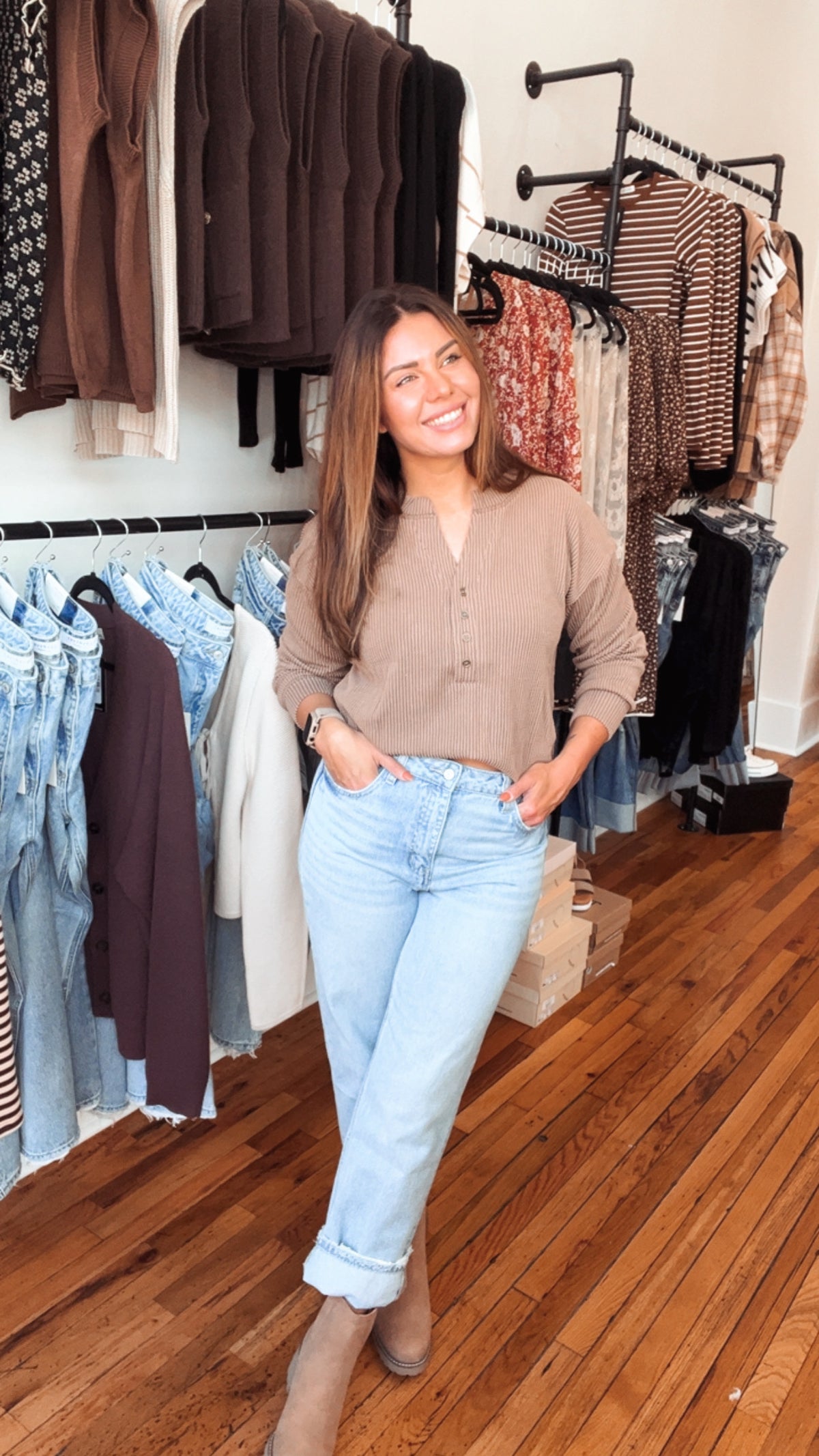 An everyday essential with a fall-forward feel. The Oakwood Henley sweater pairs classic ribbed knit texture with modern ease, giving you a look that feels both laid-back and elevated.