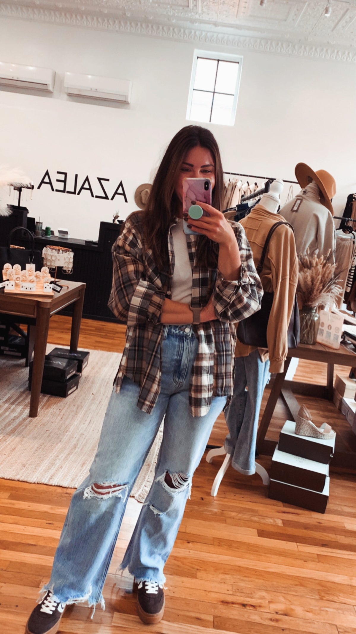 The Sierra Plaid Button-Down brings all the small-town fall vibes you love β€” cozy neutrals, subtle edge, and timeless comfort. It’s the piece you’ll throw on with everything from wide-leg denim to leggings and boots for that effortlessly cool, layered look.