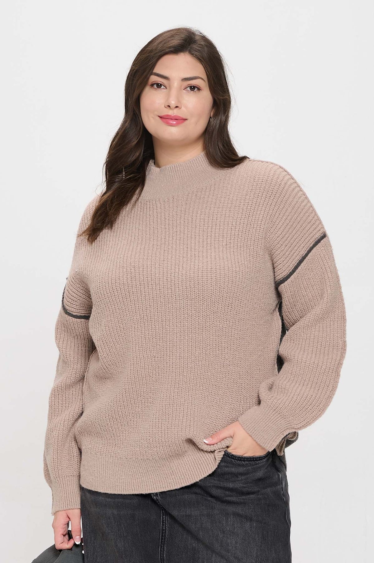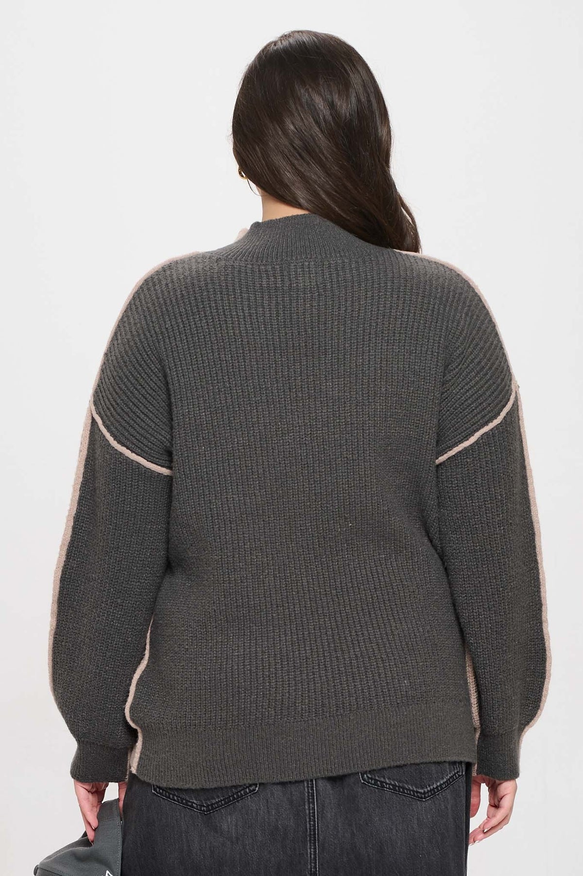Color block mock neck sweater with exposed seams. Knitted sweater. True to size.