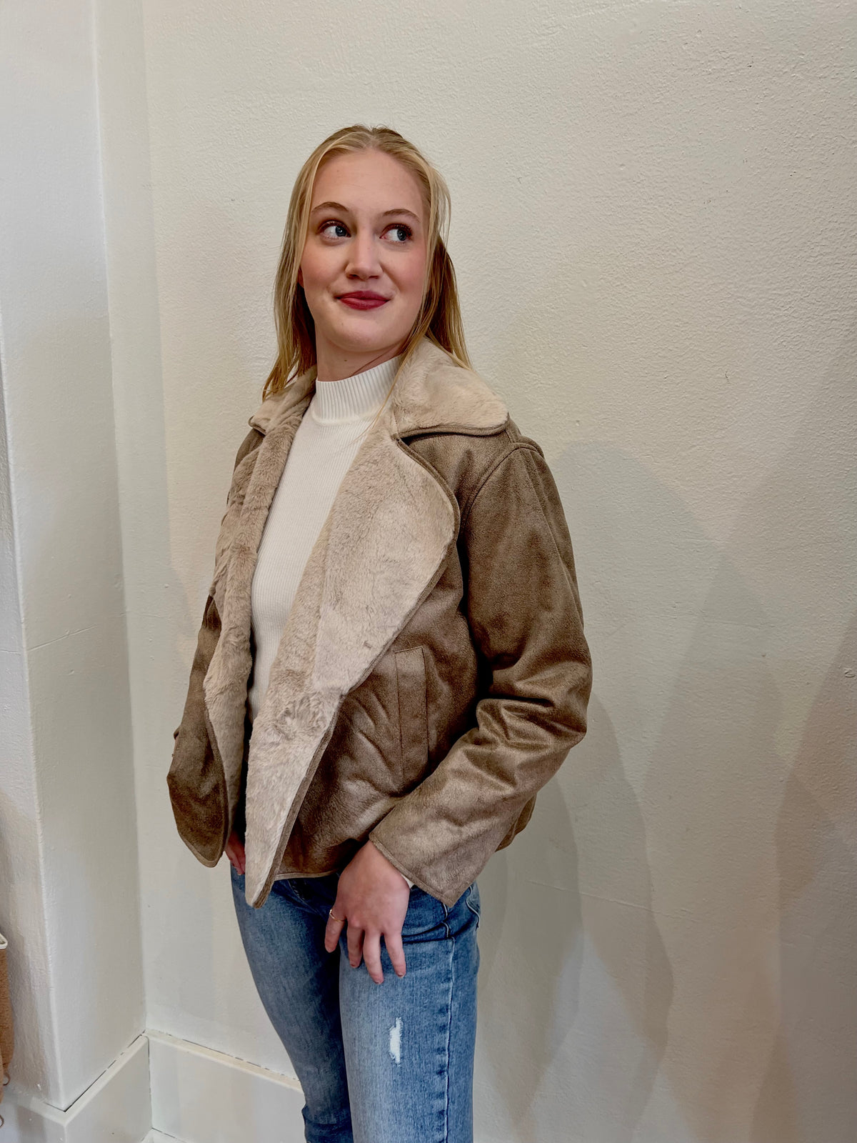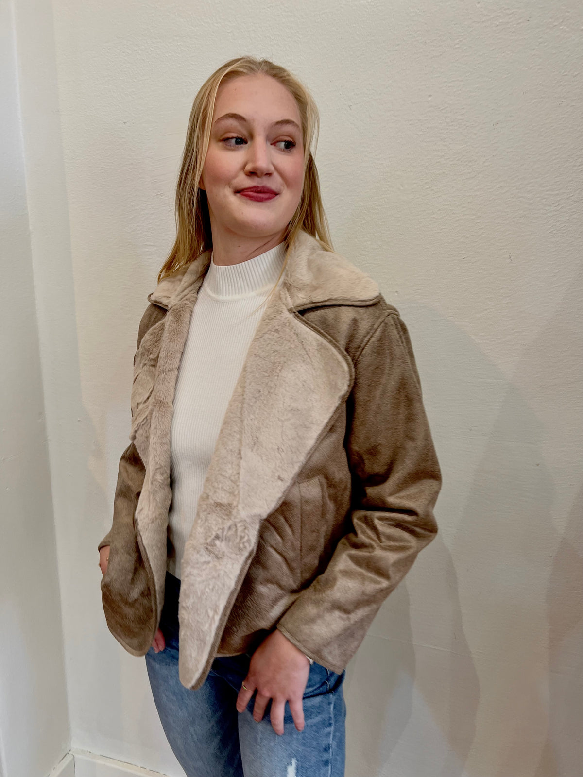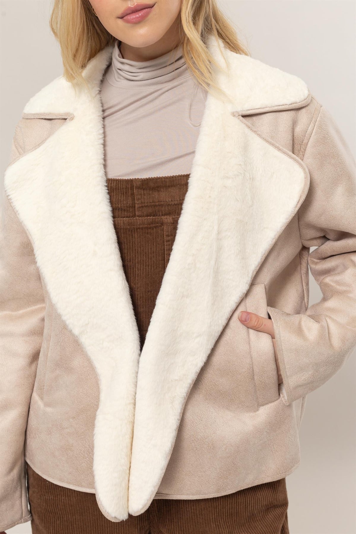 Contrast Fur Suede Jacket