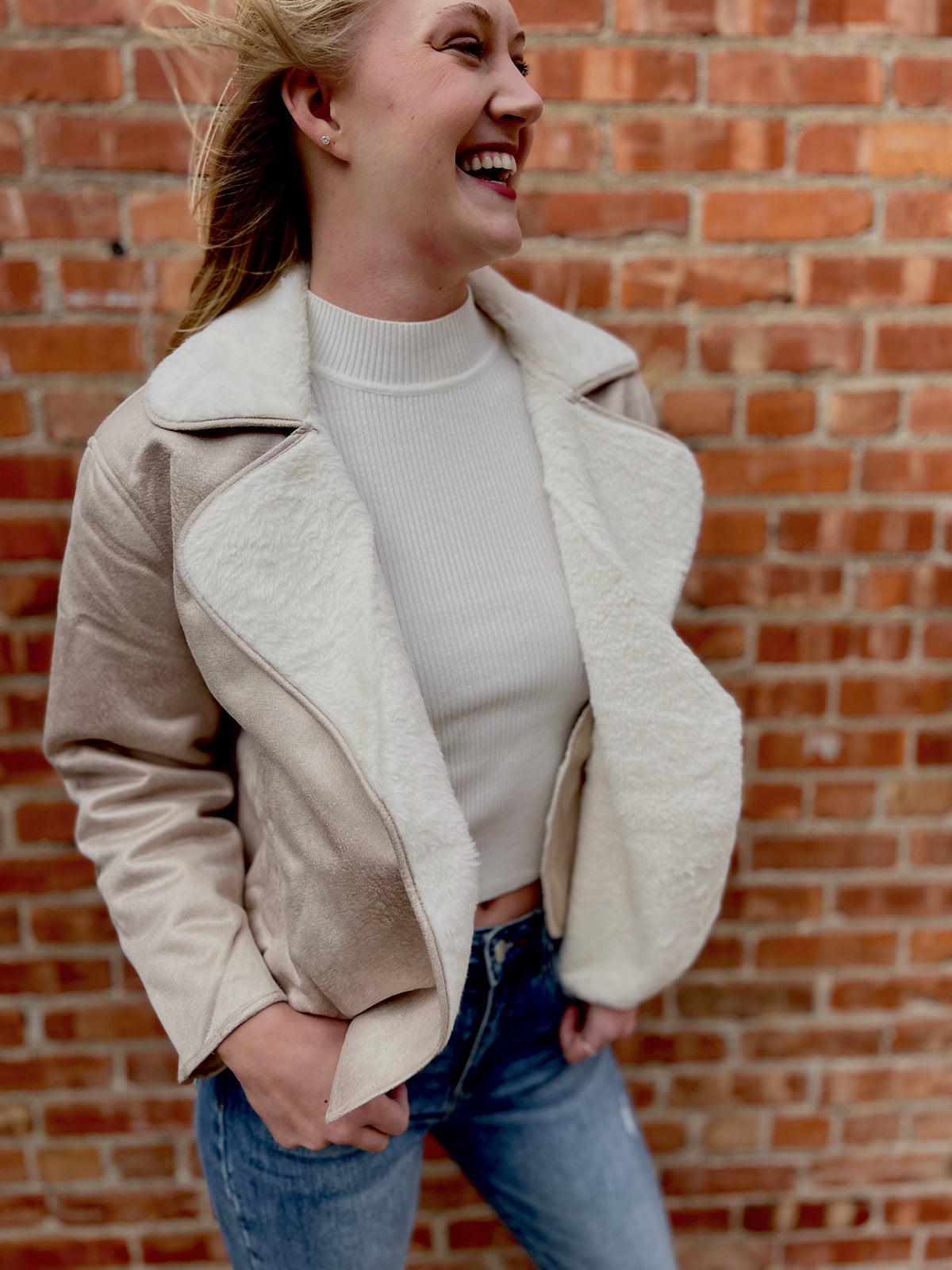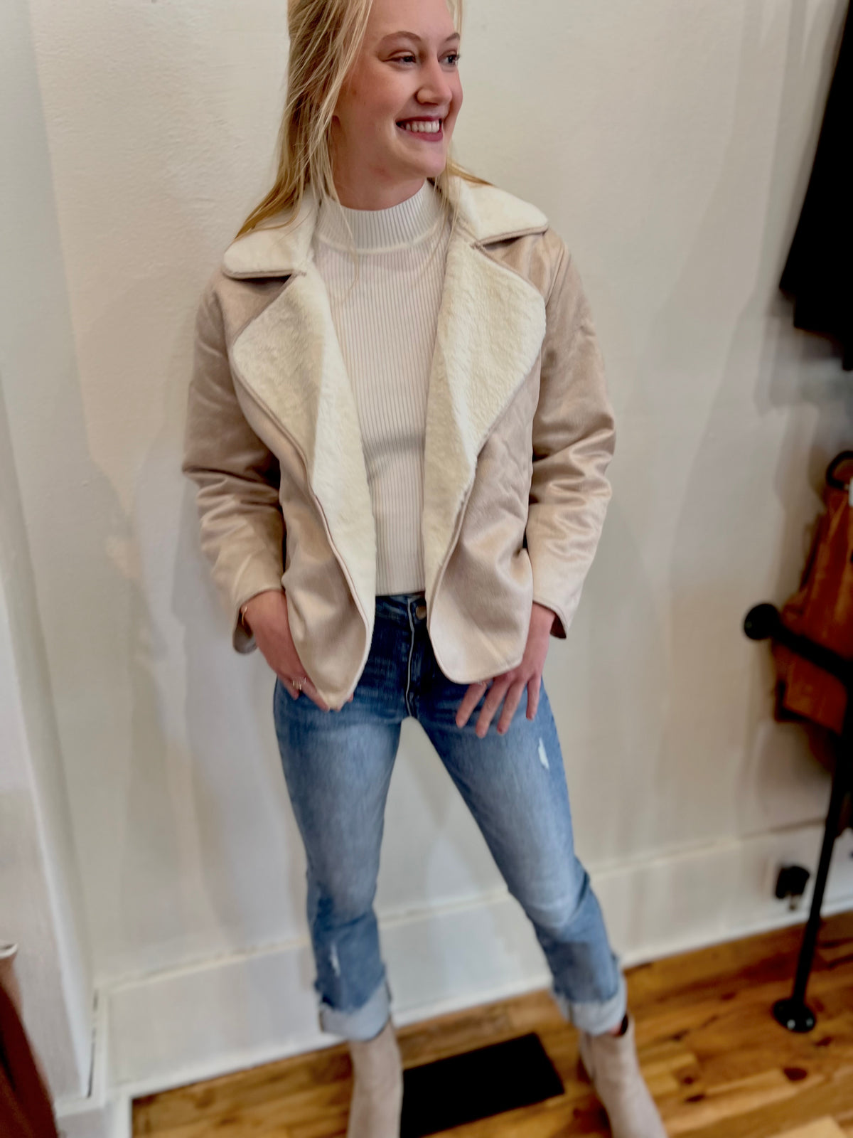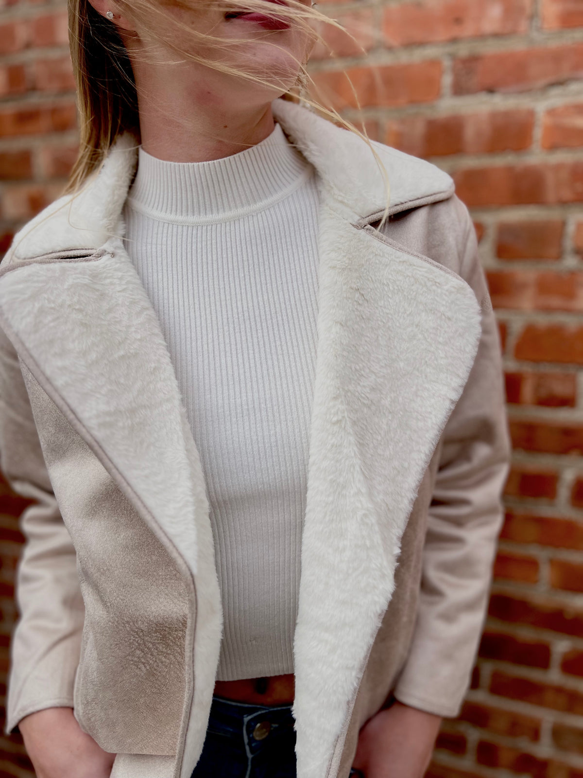 Contrast Fur Suede Jacket