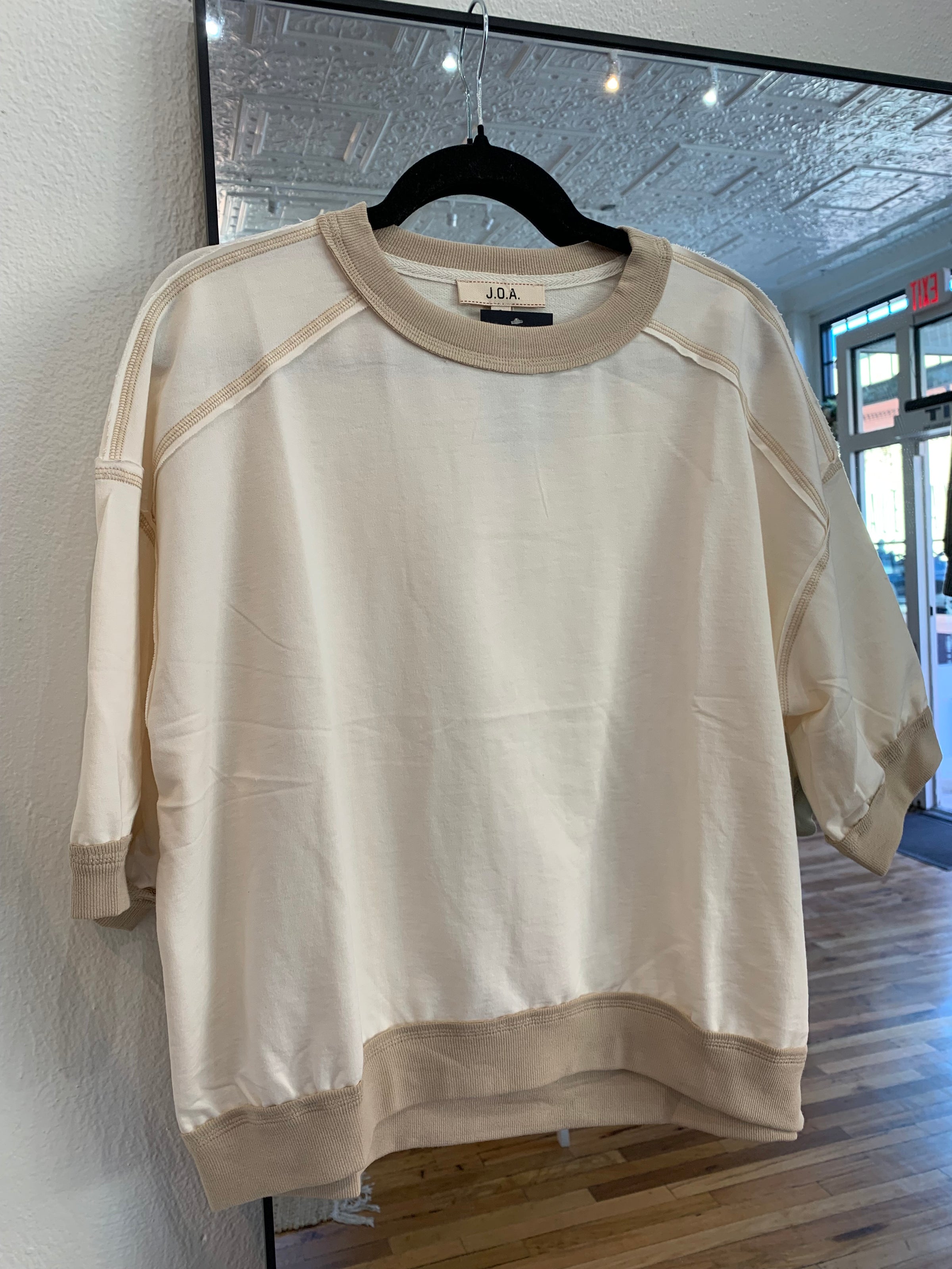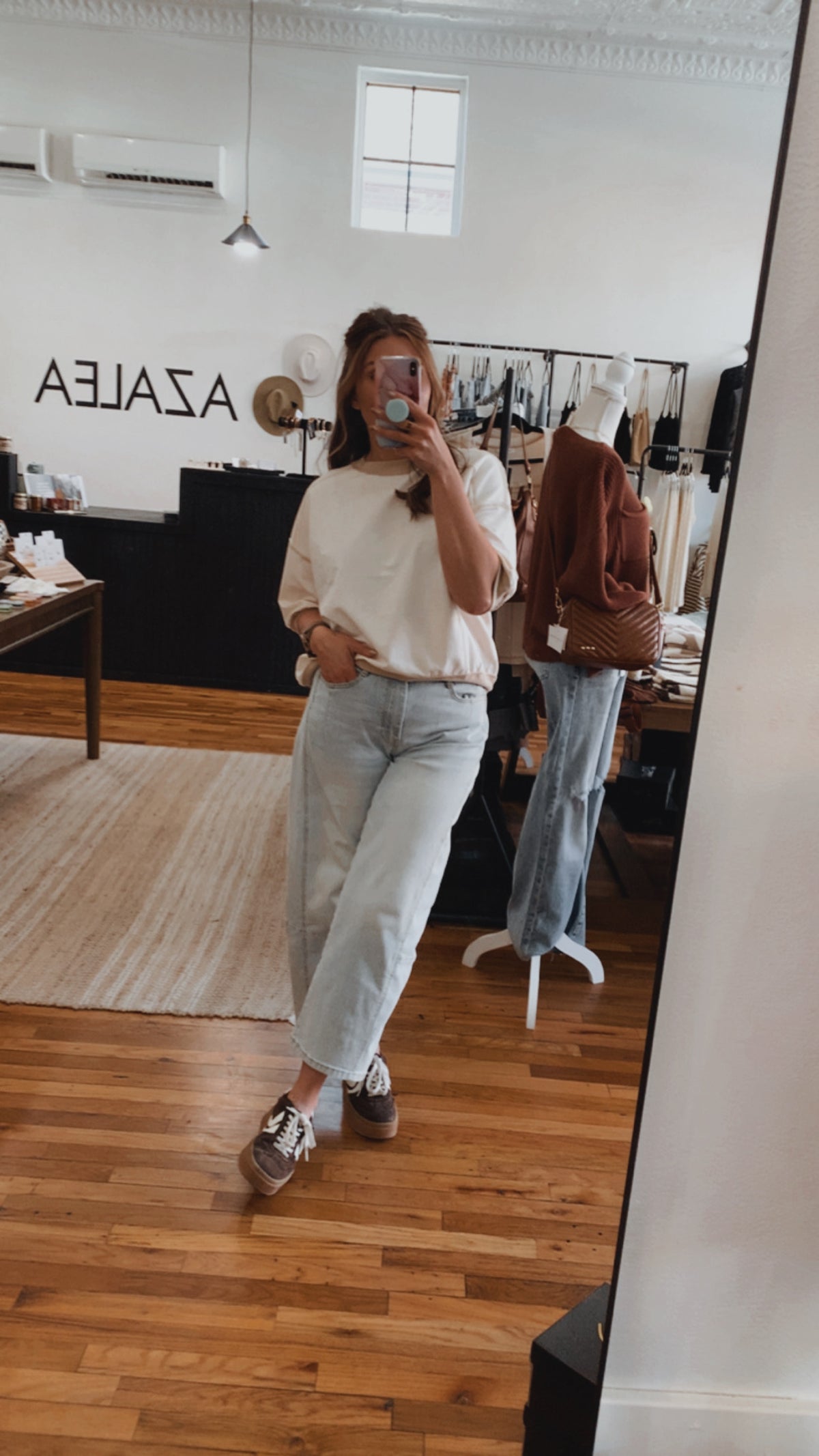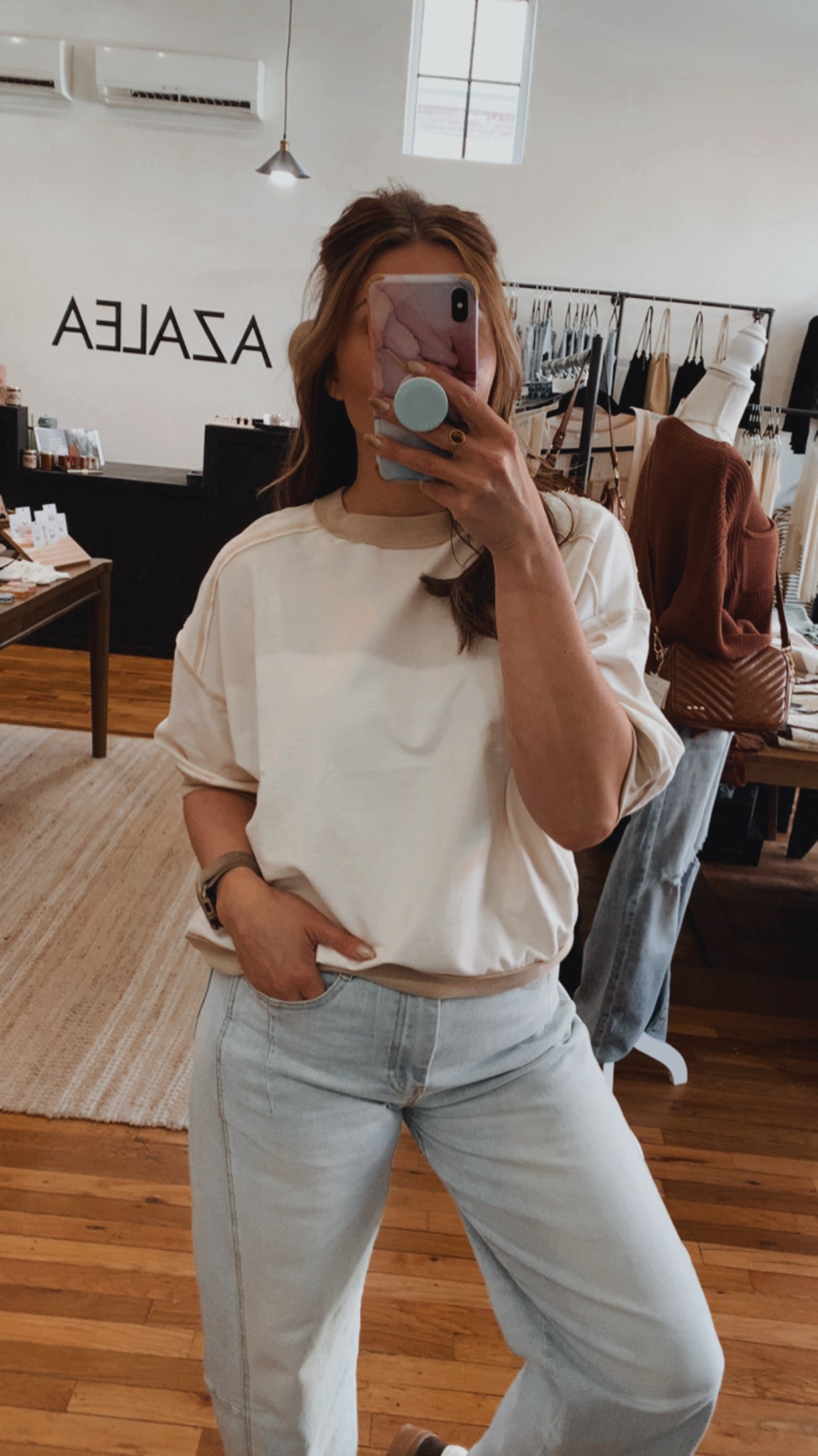 Minimal with intention. The subtle contrast trim gives just enough definition while keeping the overall look neutral and elevated. This is the kind of tee that instantly makes denim look styled.